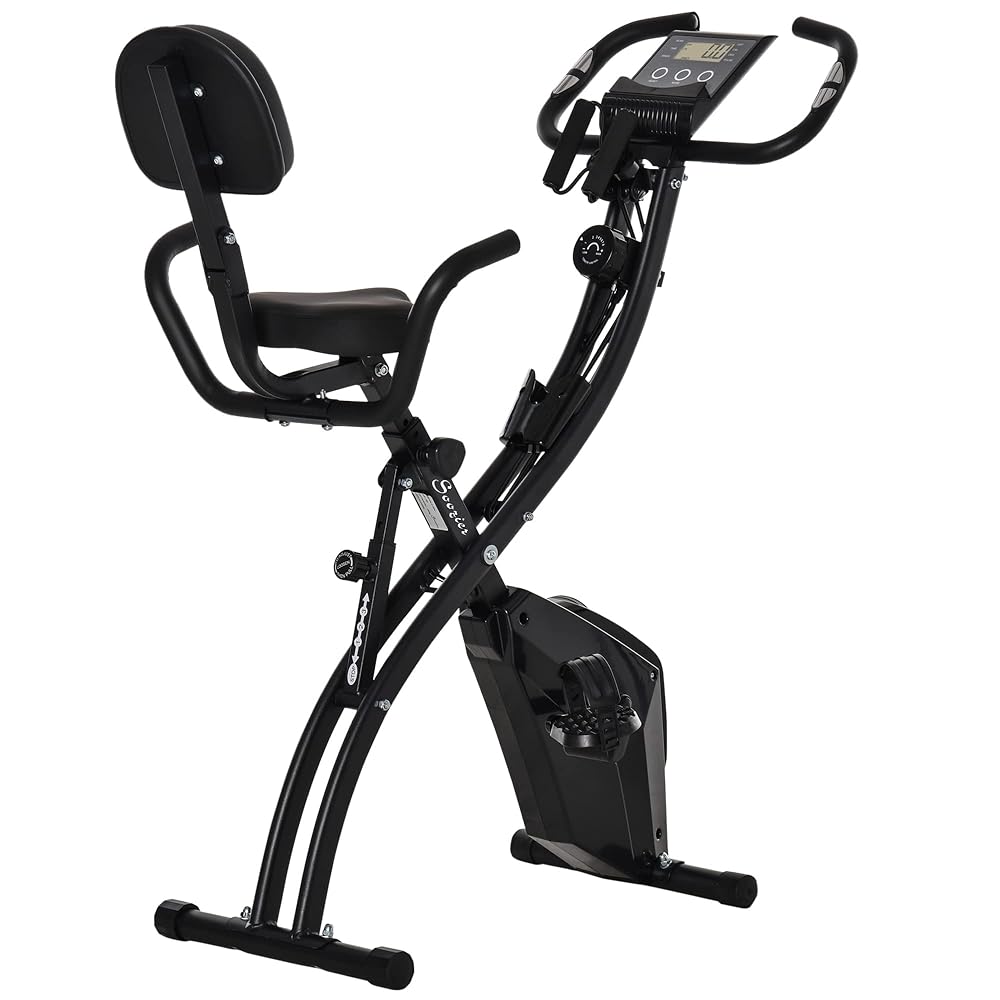 Soozier Folding Exercise Bike, 3-in-1 Recumbent Exercise Bike, Upright Workout Bike & Arm Resistance Bands, Adjustable Seat, 8-Level Magnetic Resistance