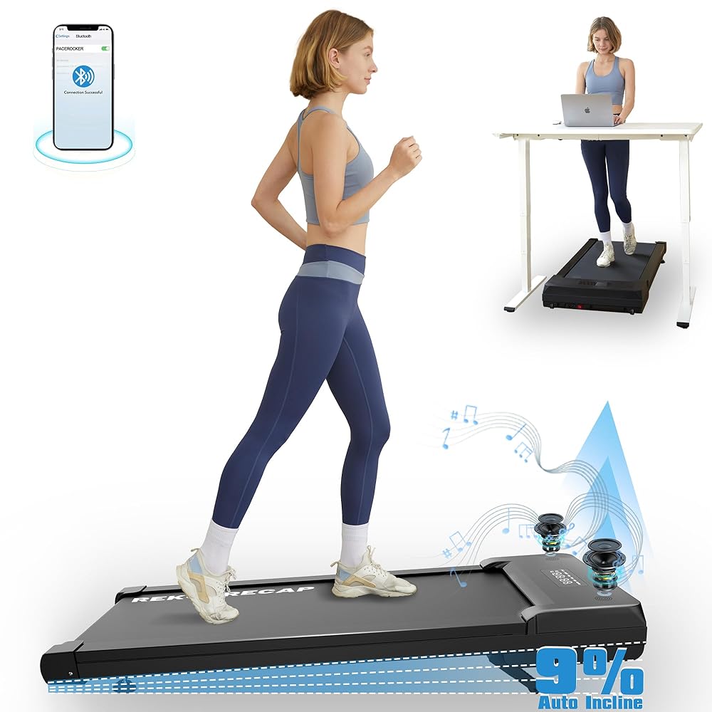 Walking Pad Treadmill with 9% 9-Level Auto Incline, 400+ lbs Capacity Under Desk Treadmills for Home Small, Bluetooth Speakers,10 Hiking Programs